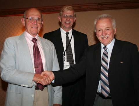At the first event in 1958, MIC President Carl Beireis reported that the key to the whole show is not the ribbons we are giving away, but the contacts the inventors make. The MIC gives inventors the opportunity to show their ideas to those who may want to finance, manufacture, market or buy new products. Josephson responds, “I think it is incredible that 50 years later the MIC’s mission remains timeless.” When presented with the F. Robert Starr Grand Prize, Harold Fratzke of Cottonwood MN, commented that he has a potential manufacturer and marketer interested in meeting with him after the event. This is Fratzke’s 17th time exhibiting at the world’s oldest annual invention convention. He exhibited The New Step-up System, (a step designed to make access to your pickup box safe and simple. This attachment can be used for a pickup or van.) Presenting the award to Fratzke was current MIC Board Member Bob Starr, co-founder of the event, along with Tony Knight of the United State Patent and Trademark Office (USPTO).