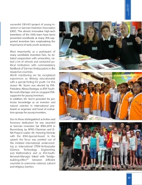 IFIA Youth Network Manager, Winfried Sturm, at iENA-2018 interna-  many worldwide invention fairs, he ini-