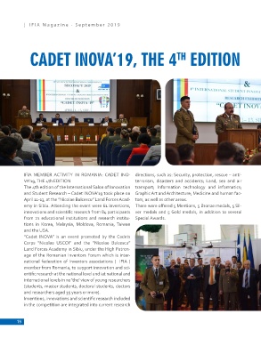 IFIA MEMBER ACTIVITY IN ROMANIA: CADET INO- directions, such as: Security, protection, rescue – anti-