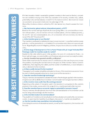 Meanwhile, the below criteria is utilized by IFIA International Jury Board to assess the inven-