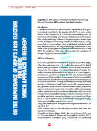 FOR INGOS ON THE IMPORTANCE OF WIPO’S 2020 ELECTION WHICH APPROACH IS NEEDED? WIPO is the global forum for intellectual property (IP) services, policy,