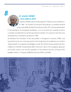 He initiated the formation of the Association of Hungarian Inventors (1989) and