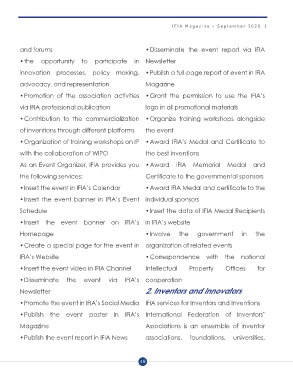 • Publish the event poster in IFIA’s International Federation of Inventors’