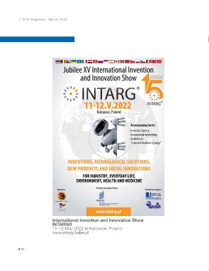 | IFIA Magazine - March 2022 International Invention and Innovation Show INTARG® 11-12 May 2022 in Katowice, Poland www.intarg.haller.pl 70