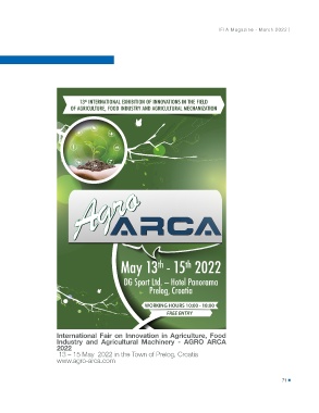 IFIA Magazine - March 2022 | International Fair on Innovation in Agriculture, Food Industry and Agricultural Machinery - AGRO ARCA 2022 13 – 15 May 2022 in the Town of Prelog, Croatia www.agro-arca.com 71
