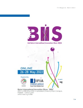 IFIA Magazine - March 2022 | Beirut International Innovation Show “BIIS” 26th to 28th May 2022 in Lebanese University Main Campus, Hadath - Online Event www.nasr.org.lb/biis 75