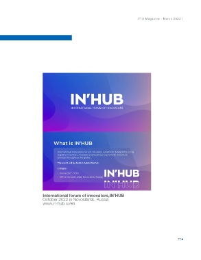 IFIA Magazine - March 2022 | International forum of innovators,IN’HUB October 2022 in Novosibirsk, Russia www.in-hub.ru/en 77