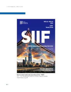 | IFIA Magazine - March 2022 Seoul International Invention Fair “SIIF” 16 - 19 November 2022 in COEX, Seoul, Korea www.kipa.org/siif 78