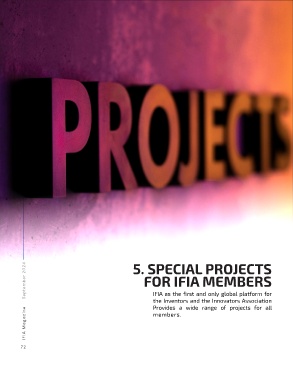 IFIA Magazine September 2024 5. SPECIAL PROJECTS FOR IFIA MEMBERS IFIA as the first and only global platform for the Inventors and the Innovators Association Provides a wide range of projects for all members. 72