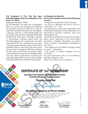 receiving the INV title certificate for each year. events, seminars, international competitions,