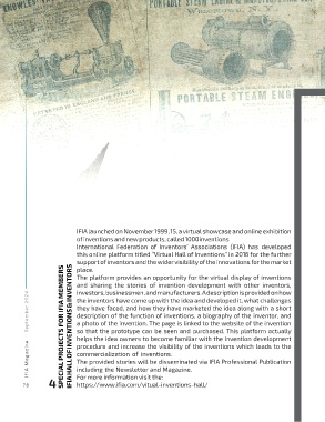 IFIA Magazine September 2024 SPECIAL PROJECTS FOR IFIA MEMBERS IFIA HALL OF INVENTIONS & INVENTORS description of the function of inventions, a biography of the inventor, and