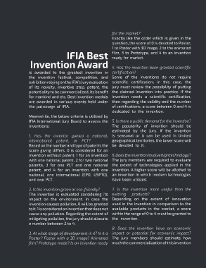 IFIA International Jury Board to assess the 5. Is there a public demand for the invention?