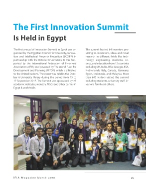 The first annual of Innovation Summit in Egypt was or- The summit hosted 64 inventors pro- The international jury composed of the in-