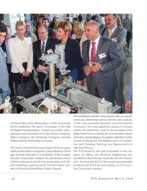were organized under the auspices of the Croatian Chamber of events were visited by over 5000 visi- Robotics Association, whereas the elementary school awarded to the innovator Boris Ukic for the innova-