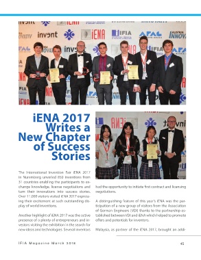 new ideas and technologies. Several inventors Malaysia, as partner of the iENA 2017, brought an addi-