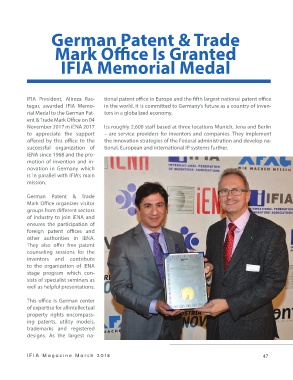 tegar, awarded IFIA Memo- in the world, it is committed to Germany’s future as a country of inven- the interested visitors, the exhi-