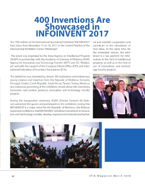 IFIA President, Alireza Ras- tional patent office in Europe and the fifth largest national patent office International Exhibition Center “Moldexpo”. new ideas. At the same time, for