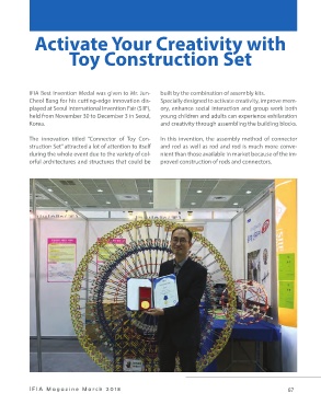 IFIA Best Invention Medal was given to Mr. Jun- built by the combination of assembly kits. Mr. Mehdi Bashiri, an inventor from Istanbul Aydın tailed information because of magnification, dis-