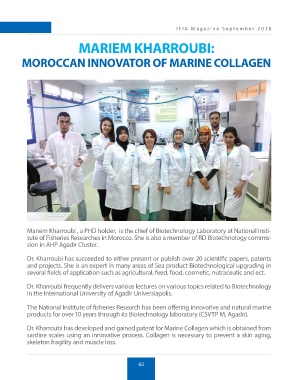 Mariem Kharroubi , a PHD holder, is the chief of Biotechnology Laboratory at National Insti- occurred to him during the birthing process prototype for Riccardo. However, she is