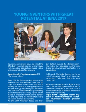 Young inventors always play a big role at the ben Bartzsch showed the Intelligent Sprin- through which the experiences of these also be- developed, constructed and produced per-