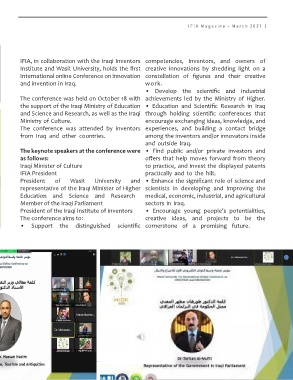 President of the Iraqi Institute of Inventors • Encourage young people’s potentialities,