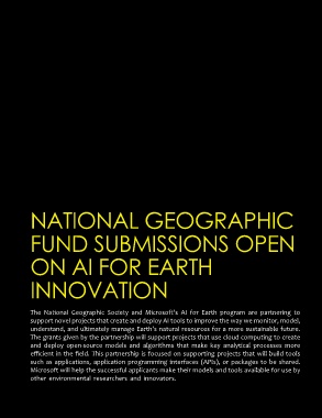 The National Geographic Society and Microsoft’s AI for Earth program are partnering to
