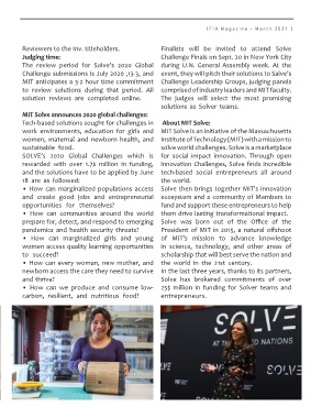 Reviewers to the Inv. titleholders. Finalists will be invited to attend Solve