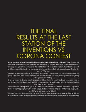 Therefore, under the patronage of IFIA and WIIF, Inventions VS Corona Contest was organized