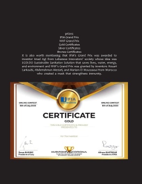 and environment and WIIF’s Grand Prix was granted by inventors Houari