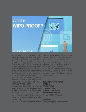 trustworthy IP services worldwide. BENEFITS OF WIPO PROOF