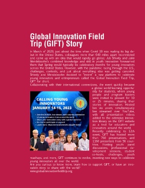 young innovators and entrepreneurs called the Global Innovation Field Trip,