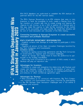 IFIA’S STARTUPS DEPARTMENT RESPONSIBILITIES