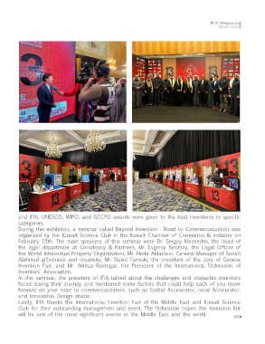 and IFIA, UNESCO, WIPO, and GCCPO awards were given to the best inventions in specific