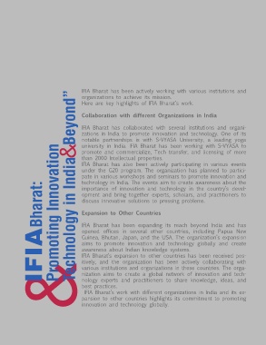 IFIA Bharat has collaborated with several institutions and organi-