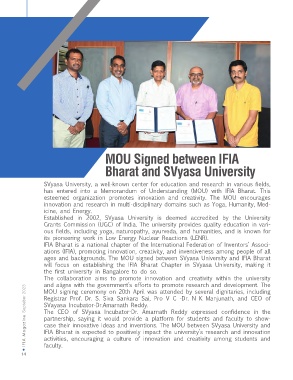 ages and backgrounds. The MOU signed between SVyasa University and IFIA Bharat