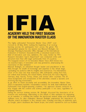 field of innovation and idea validation. The class, hosted by “IFIA