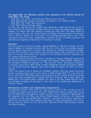 The 8th International Invention Innovation Competition in Canada, iCAN 2023 organized by