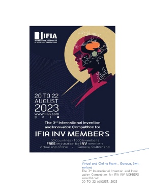 IFIA Magazine Septeber 2023 Virtual and Online Event – Geneva, Swit- zerland The 3 International Invention and Inno- rd vation Competition for IFIA INV MEMBERS www.IFIA.com 20 TO 22 AUGUST, 2023 95