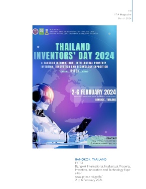 115 IFIA Magazine March 2024 BANGKOK, ThAILAND IPITEX Bangkok International Intellectual Property, Invention, Innovation and Technology Expo- sition www.ipitex.nrct.go.th/ 2 to 6 February 2024