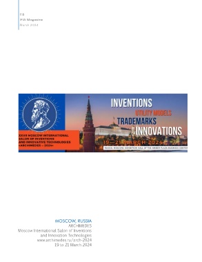 118 IFIA Magazine March 2024 MOSCOW, RUSSIA ARCHIMEDES Moscow International Salon of Inventions and Innovation Technologies www.archimedes.ru/arch-2024 19 to 21 March 2024
