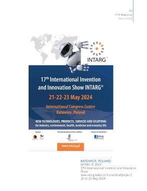 121 IFIA Magazine March 2024 KATOWICE, POLAND INTARG ® 2024 17th International Invention and Innovation Show www.intarg.haller.pl/home.html?jezyk=1 21 to 23 May 2024