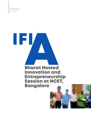 16 IFIA Magazine March 2024 A IFI Bharat Hosted Innovation and Entrepreneurship Session at NCET, Bangalore