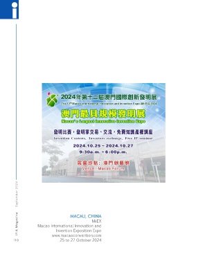 IFIA Magazine September 2024 MACAU, CHINA MiiEX Invention Exposition Expo www.macaoconvention.com 25 to 27 October 2024 110 Macao International Innovation and