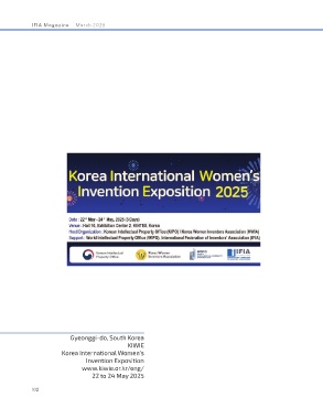 IFIA Magazine March 2025 Gyeonggi-do, South Korea KIWIE Korea International Women’s Invention Exposition www.kiwie.or.kr/eng/ 22 to 24 May 2025 102