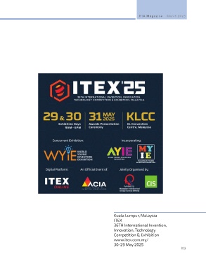 IFIA Magazine March 2025 Kuala Lumpur, Malaysia ITEX 36TH International Invention, Innovation, Technology Competition & Exhibition www.itex.com.my/ 30-29 May 2025 103