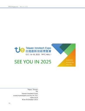 IFIA Magazine March 2025 Taipei, Taiwan TIE Taiwan Innotech Expo www.inventaipei.com.tw/zh-tw/ index.html 16 to 18 October 2025 110