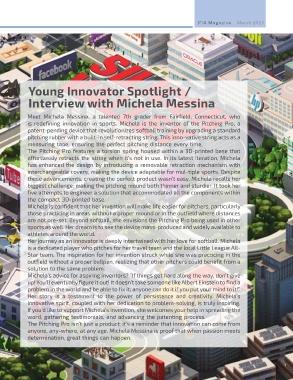 is redefining innovation in sports. Michela is the inventor of the Pitching Pro, a
