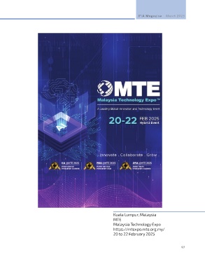 IFIA Magazine March 2025 Kuala Lumpur, Malaysia MTE Malaysia Technology Expo https://mtexpo.mte.org.my/ 20 to 22 February 2025 97