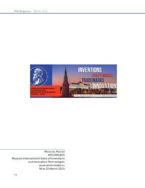 IFIA Magazine March 2025 Moscow, Russia ARCHIMEDES Moscow International Salon of Inventions and Innovation Technologies www.archimedes.ru 18 to 20 March 2025 98