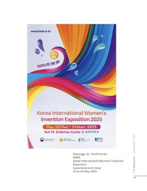 IFIA Magazine September 2025 Gyeonggi-do, South Korea KIWIE Korea International Women’s Invention Exposition www.kiwie.or.kr/eng/ 22 to 24 May 2025 119